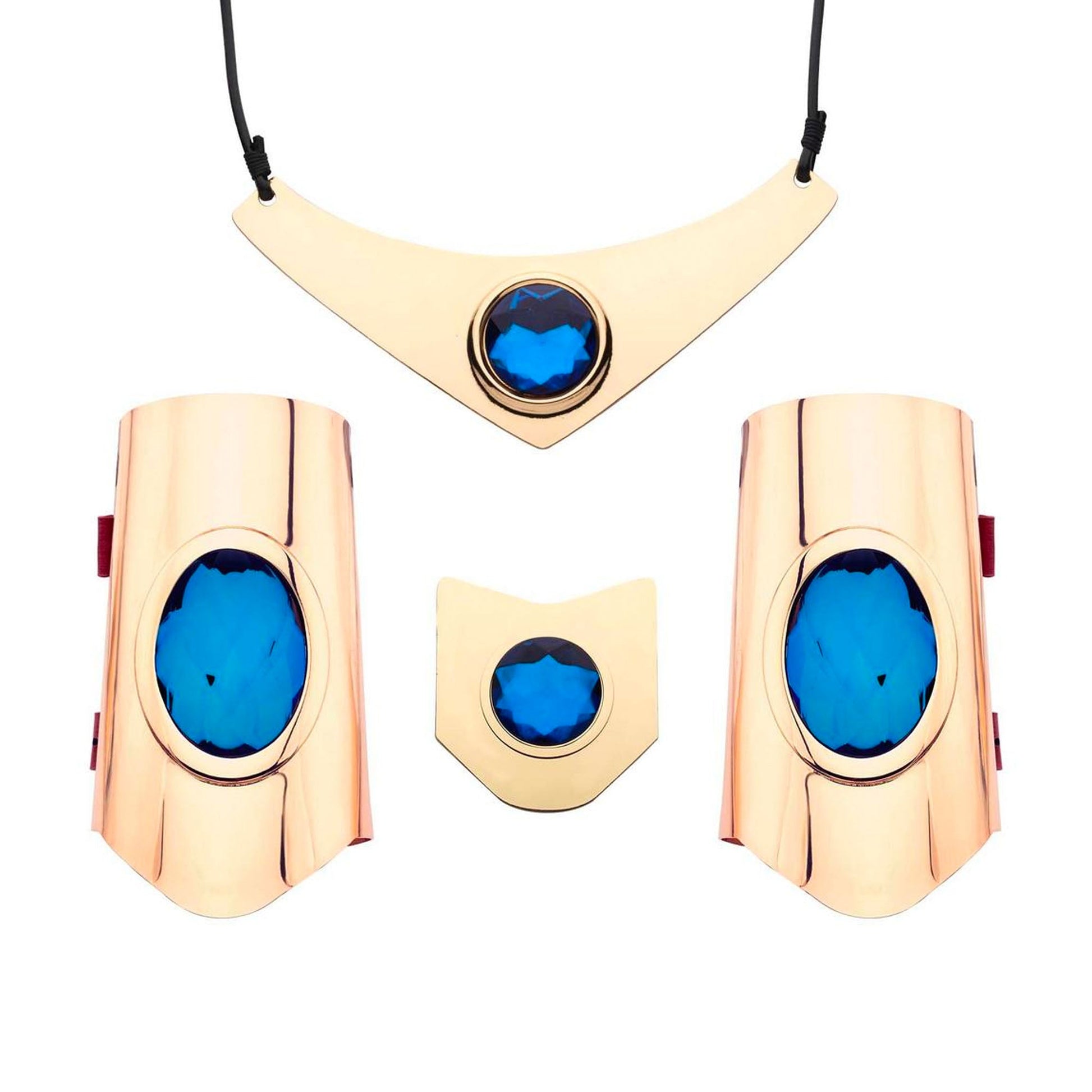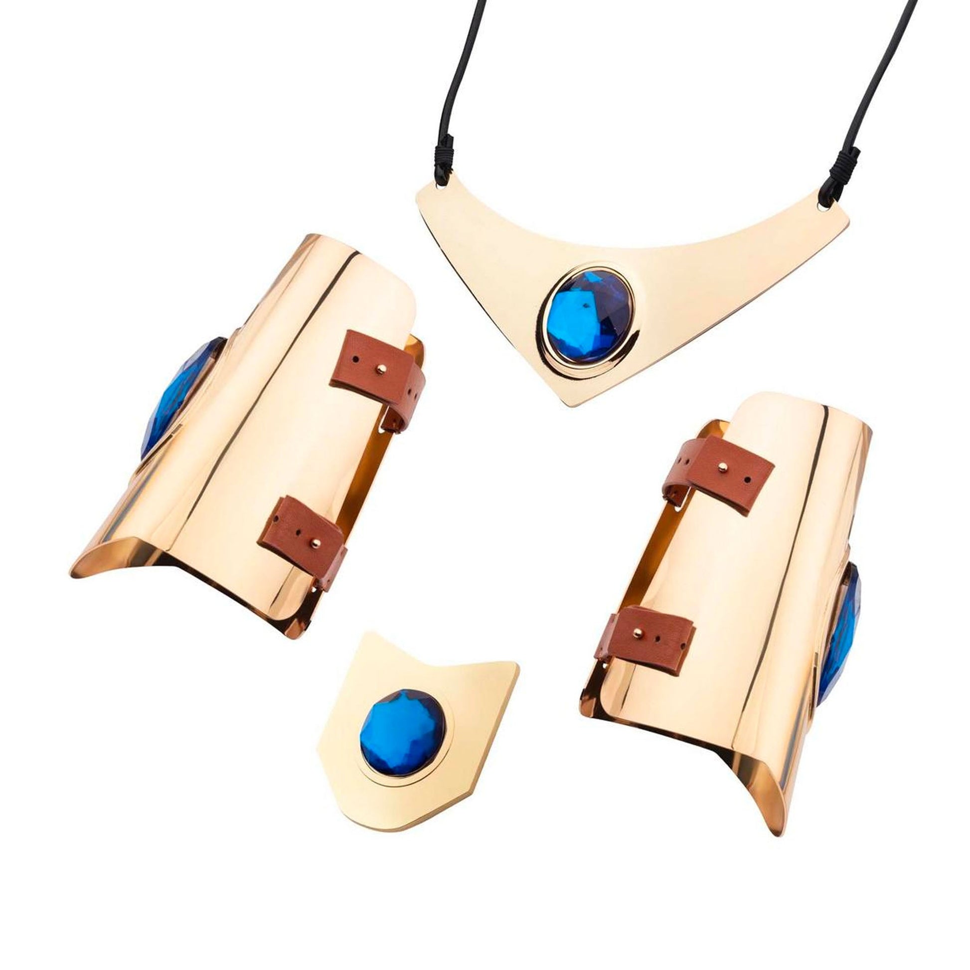 - 4 piece set of a necklace, belt pin piece, and two bracelets