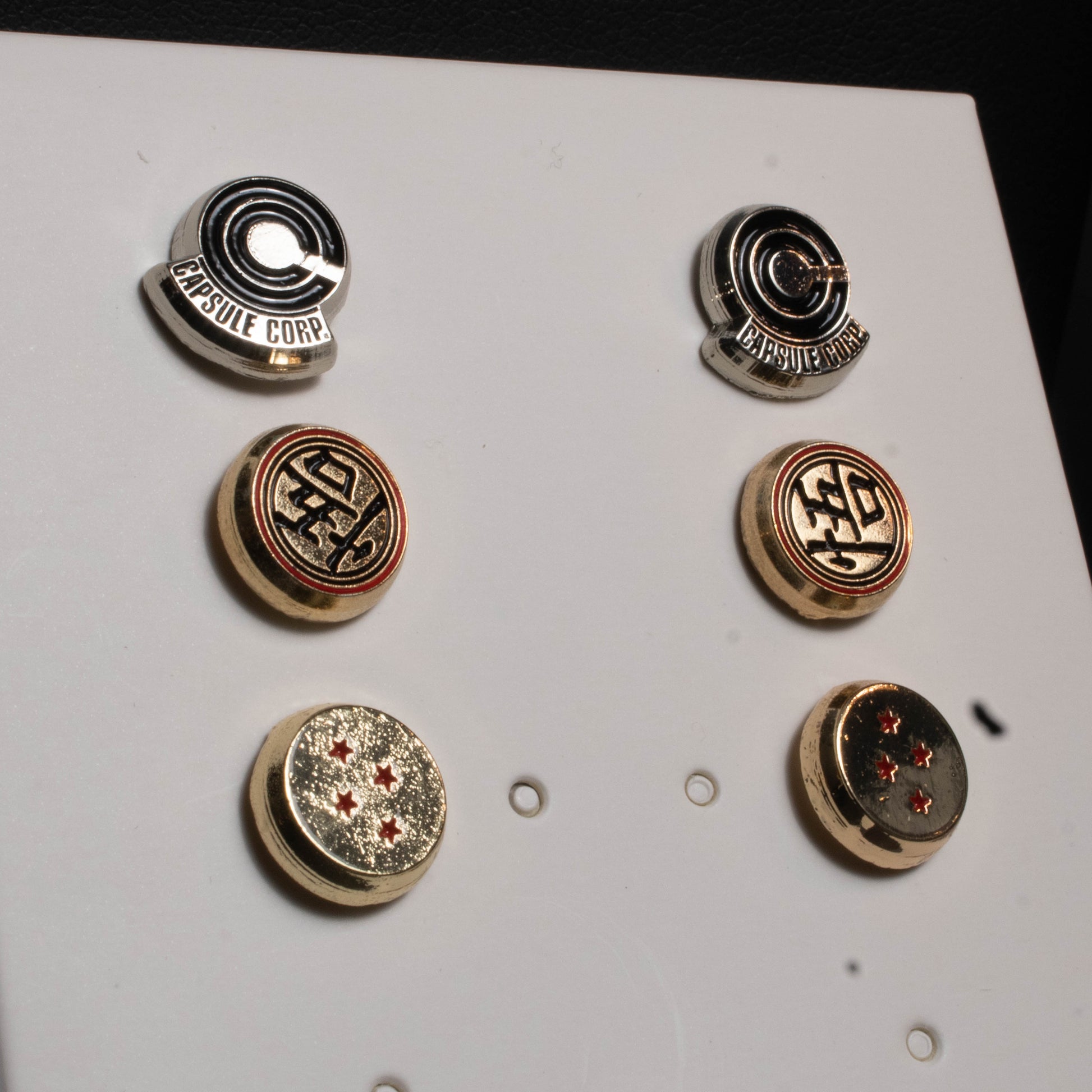 Make a statement and show off your fan pride with this 3-pack of Dragon Ball Z stud earrings! This set includes the Capsule Corp logo, Dragon Ball #4, and Goku's symbol - so you can be sure to sport your favorite characters with flair. Power up your wardrobe! With these stylish earrings by your side, your power level will easily be over 9000!