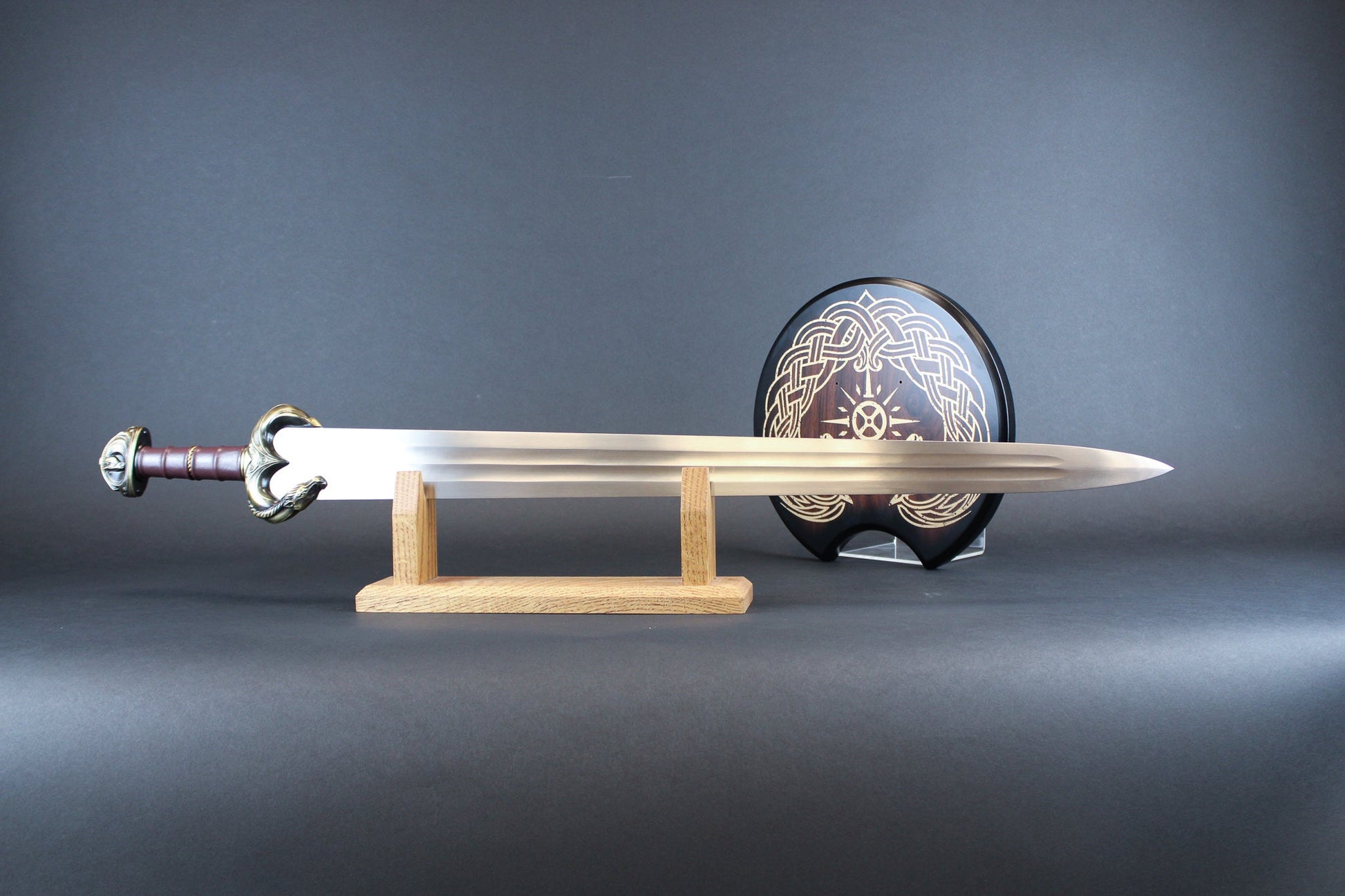 In the final stand against the dark lord Sauron, Éomer fought alongside Aragorn with the armies of Rohan and Gondor at the Gates of Mordor. This authentically detailed replica is a reproduction of the actual filming prop built by Weta Workshop and used in The Lord Of The Rings films presented by New Line Cinema.