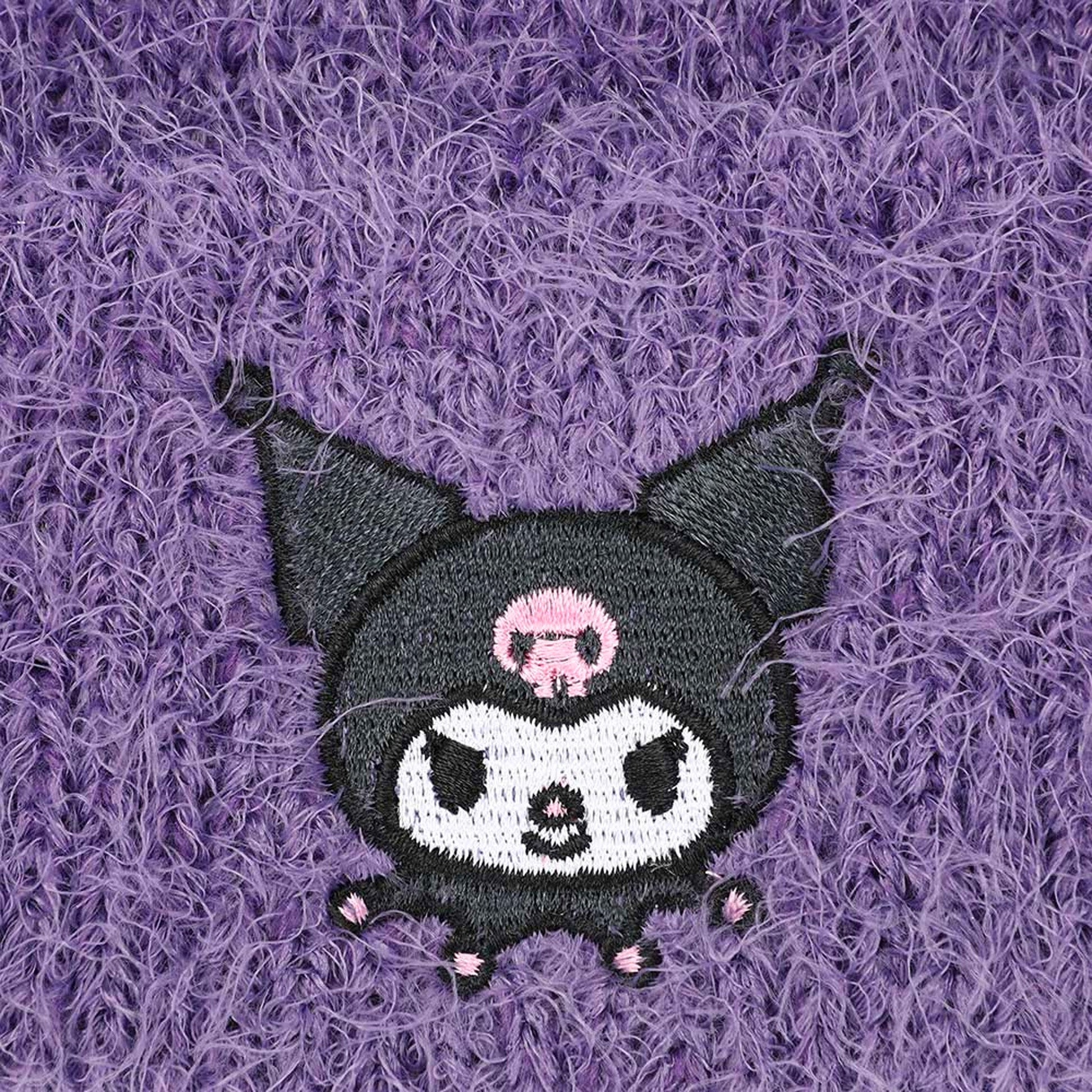 Keep cozy and stylish with the Kuromi Sanrio Lavender Soft & Fuzzy Cuff Beanie Hat! This delightful beanie features an adorable embroidered design of Kuromi, perfect for fans of this mischievous character. Made from soft, fuzzy fabric, this hat provides warmth and comfort, making it an ideal accessory for chilly days or casual outings.