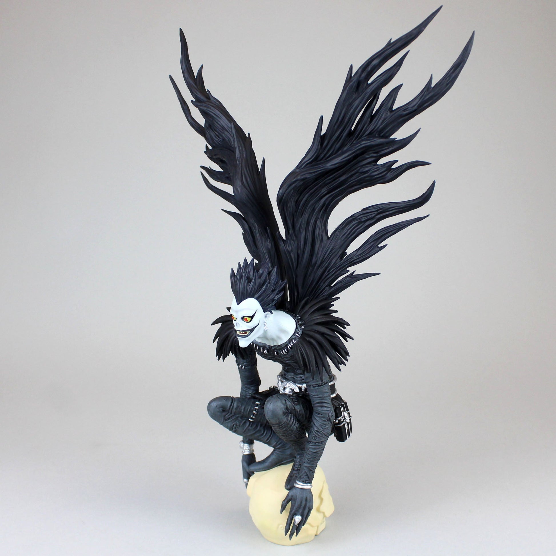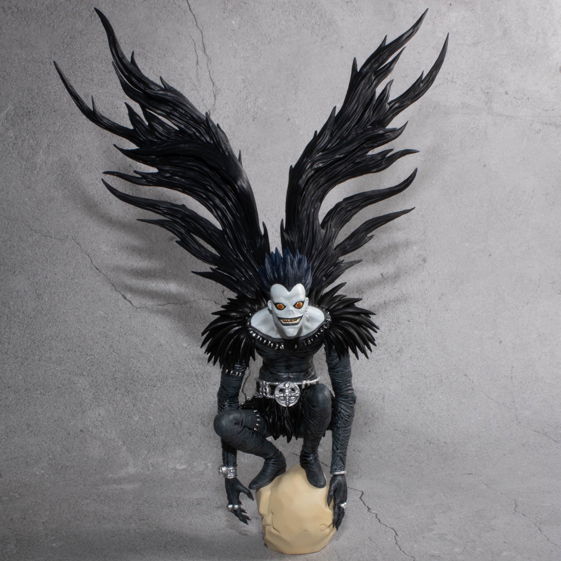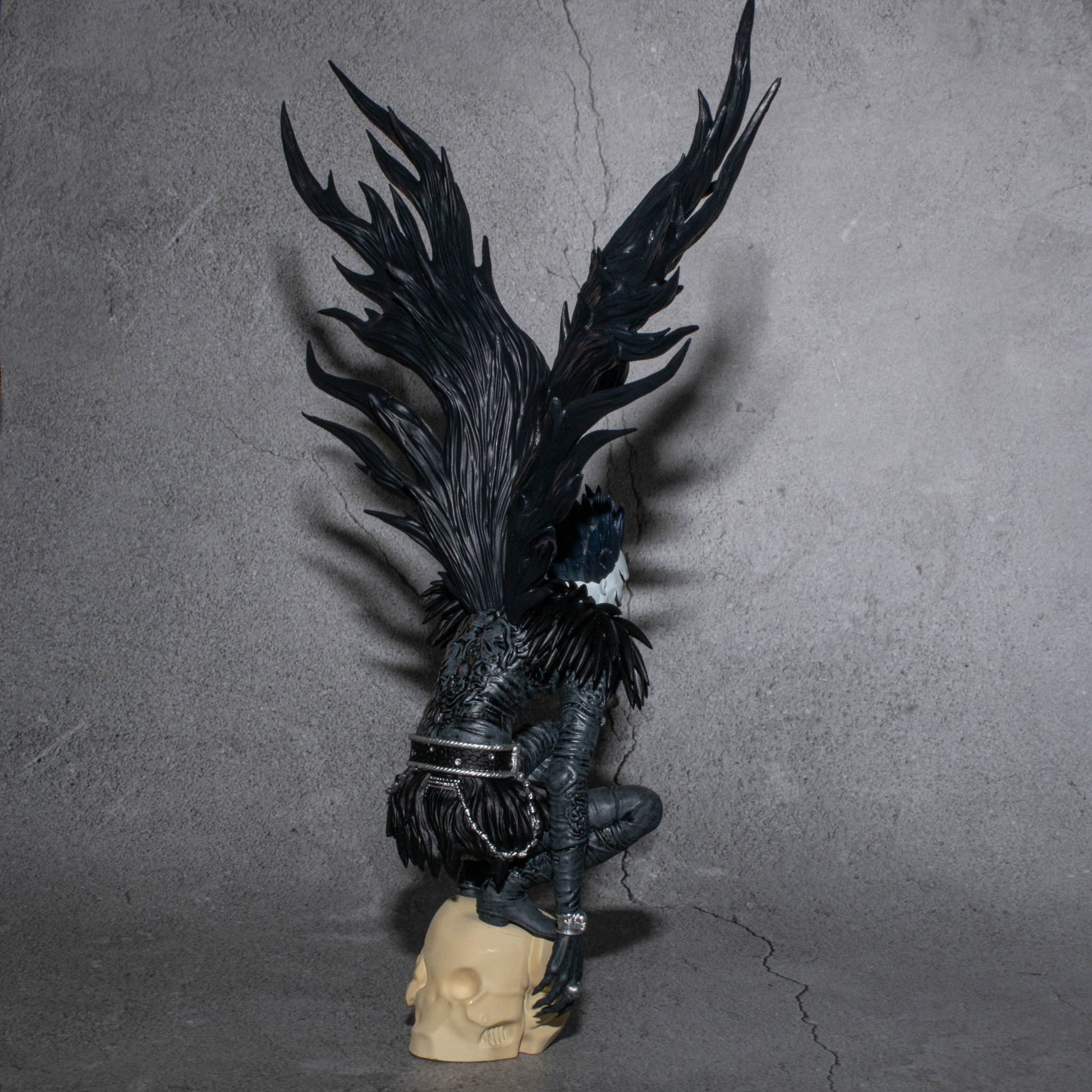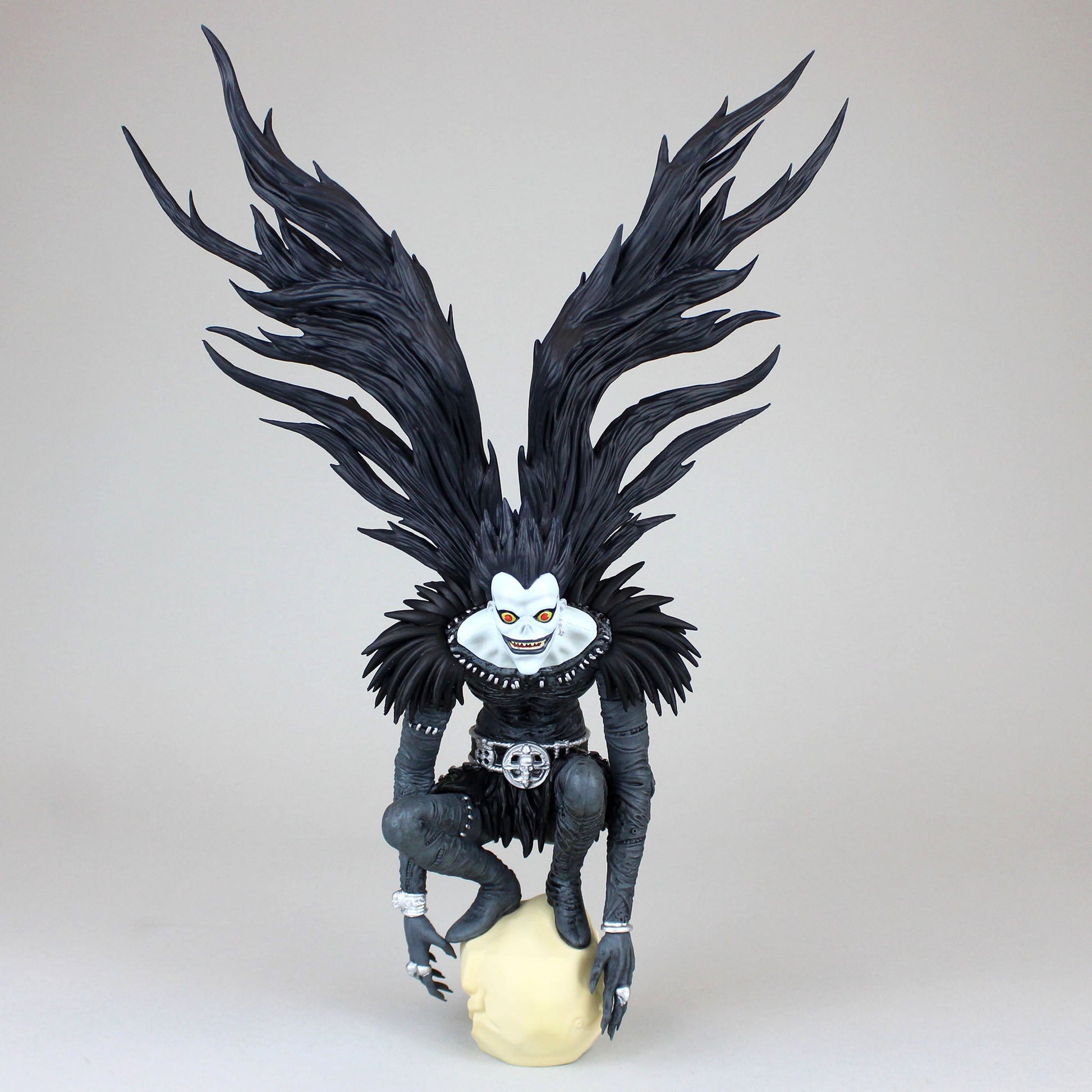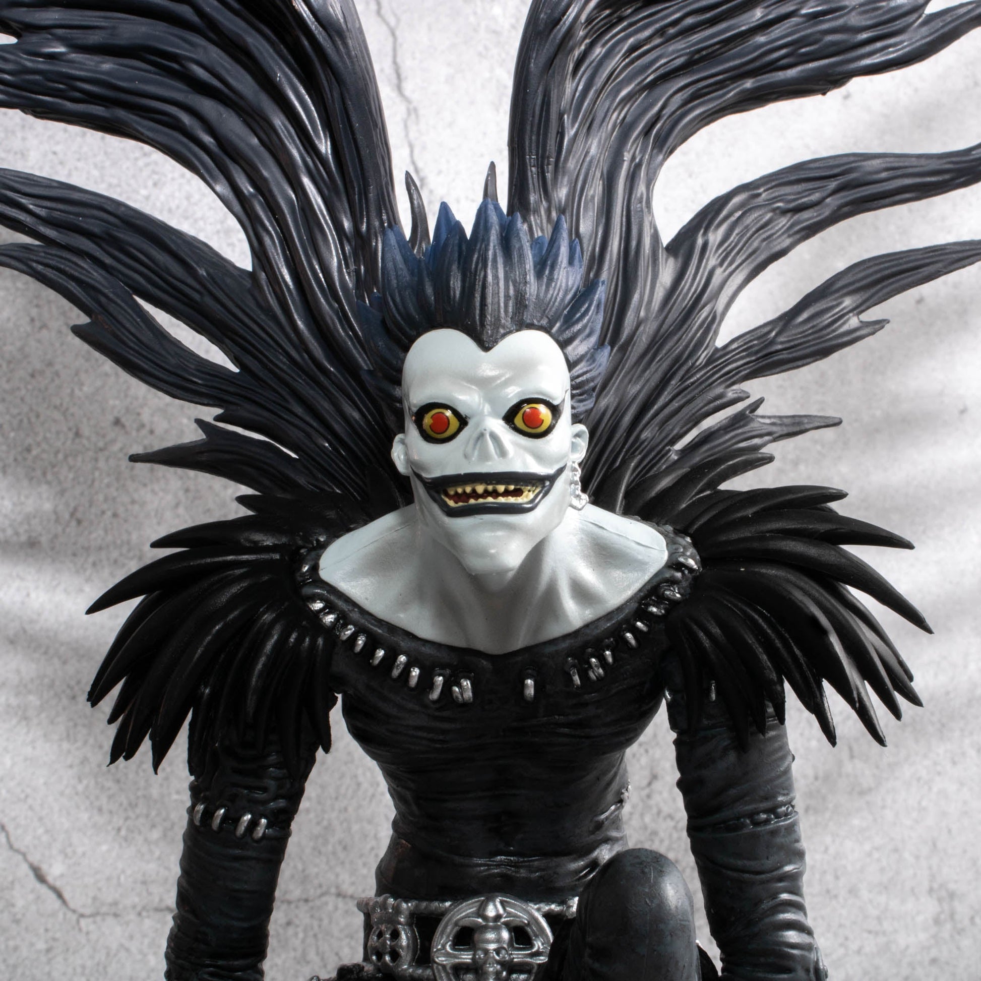 In the anime series Death Note, Ryuk has travelled all the way from the Shinigami Realm to make things a little more interesting for us all! Dressed in his tattered, black bodysuit, complete with wings and feathers, Ryuk crouches in anticipiation, poised to leap into your figurine collection!