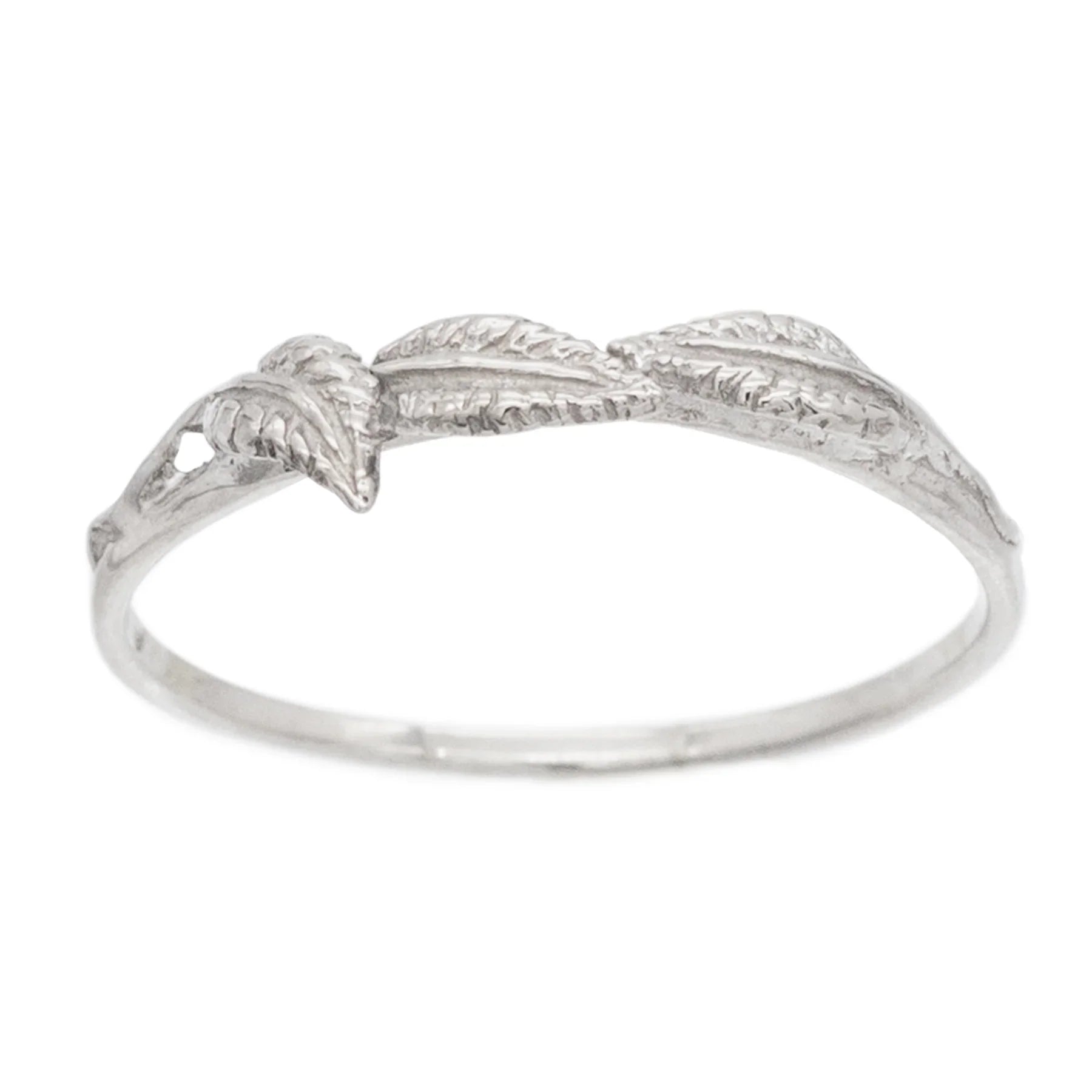 - The ring is solid sterling silver and measures 5 mm (just under 1/4") from the leaf tip to the band.