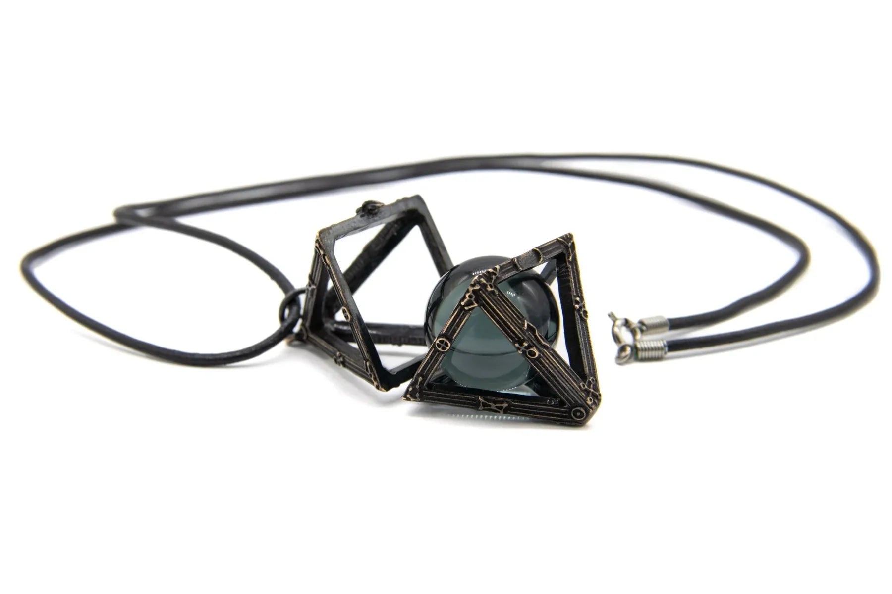 Details: The Palantir locket is solid bronze and holds the Orthanc-stone, a 20 mm transparent black glass sphere. The locket is hinged so that it can open and close and the seeing-stone can be removed.