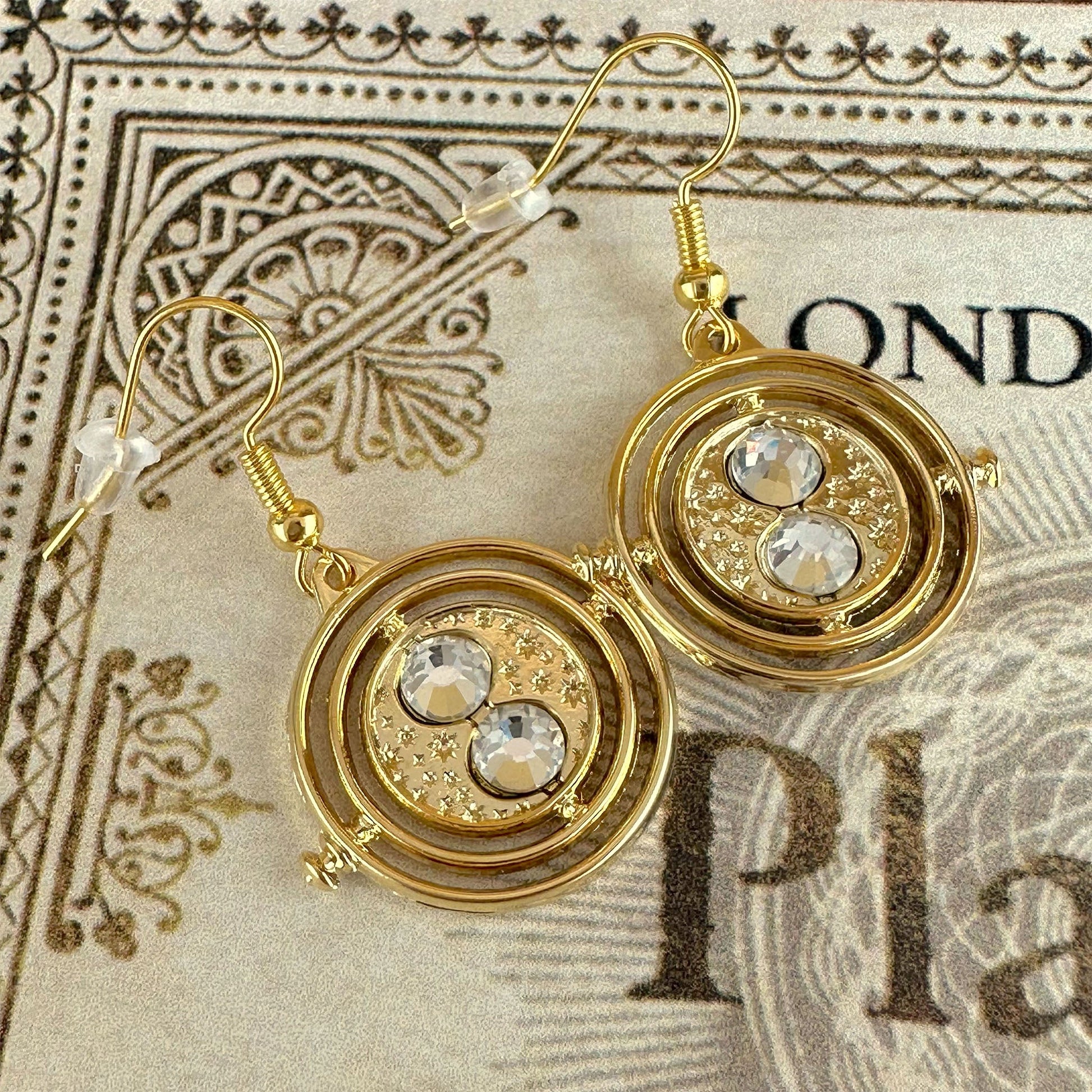 - Gold Tone Time Turner earrings with faux crystal bead elements